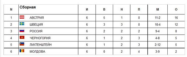 12 октября. Россия – Черногория, Швеция – Молдова, Австрия – Лихтенштейн.