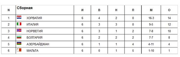 6 сентября. Норвегия – Хорватия, Мальта – Азербайджан, Италия – Болгария.
