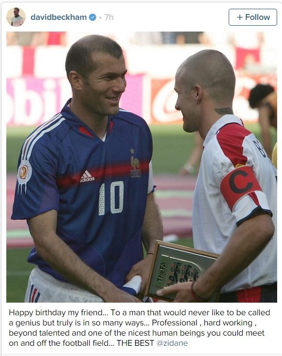 Бэкхем - Зидану: "Поздравляю с днем рождения, друг-гений!" (+ФОТО)