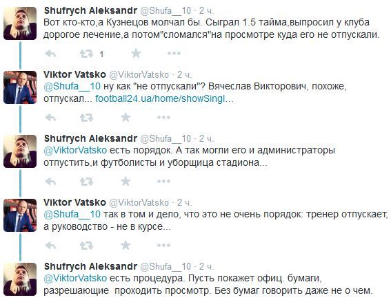 Вацко вступил в дискуссию с Александром Шуфричем в Твиттере относительно работы руководства "Говерлы"
