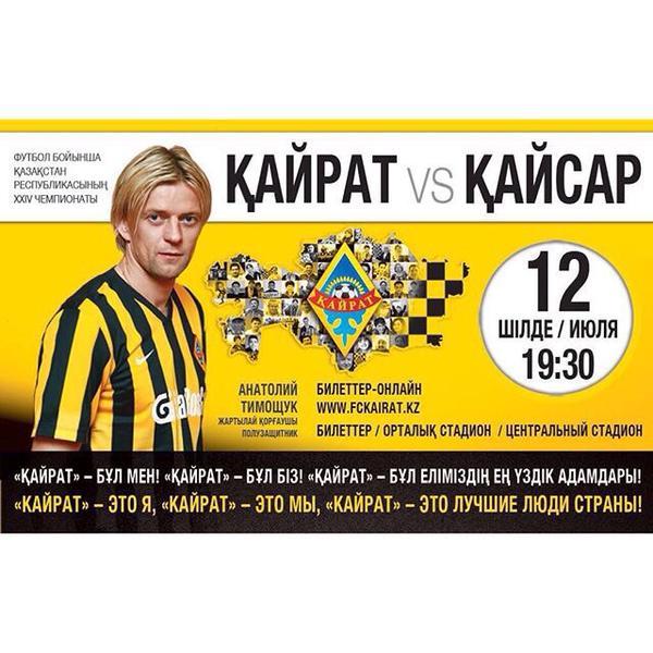 "Кайрат вже на повну розкручує бренд новачка! Дебют Тимощука в чемпіонаті Казахстану очікується вже цієї неділі!", - написал Андриюк.