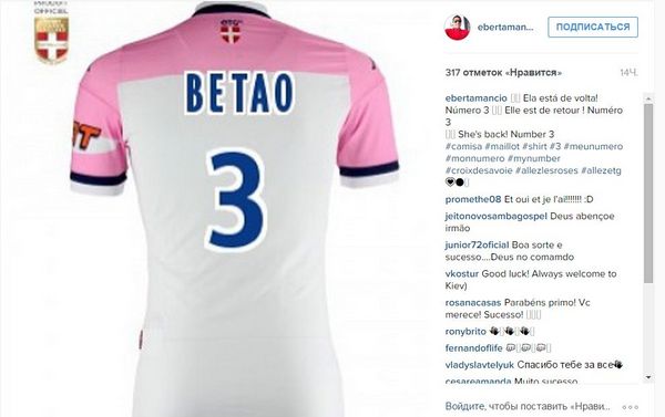 Бывший защитник "Динамо" Бетао в Instagram поделился информацией, что будет выступать в "Эвиане" под третьим номером.
