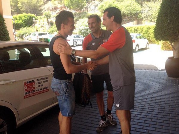 Игрока встретили главный тренер испанского клуба Унаи Эмери и президент Хосе Кастро.