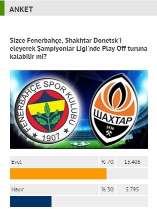 Так, популярный спортивный портал страны Fanatik провёл голосование, в котором болельщикам предлагалось ответить на вопрос: сумеет ли "Фенербахче" пройти "Шахтёр"?