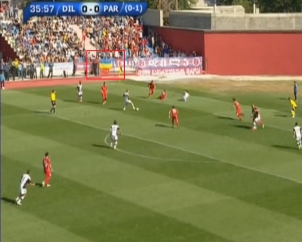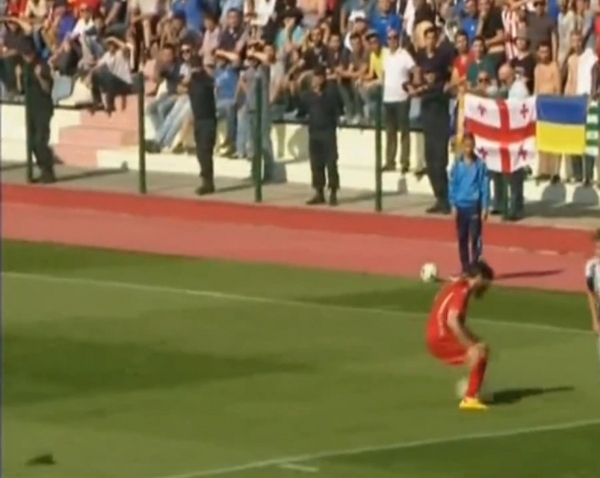В грузинському Горі на поєдинку між місцевою "Ділою" та сербським "Партизаном" були помічені українські прапори.