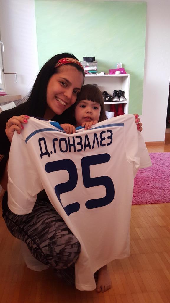 Новичок киевского "Динамо" Дерлис Гонсалес презентовал свою динамовскую футболку семье, о чем он сообщил, выложив фото в Твиттере.