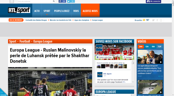 "Руслан Малиновский – жемчужина Луганска, арендованная у "Шахтера", - под таким заголовком вышел материал rtl.be.