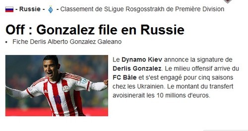 «Гонсалес отправился в Россию», - примерно так звучит заголовок издания footgoal.net, а в оформлени самой новости напротив «Динамо» стоит «триколор»...