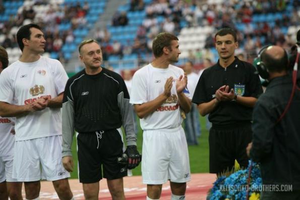 — Матч був виставковим — травми були ні до чого. Так що грали ми один проти одного акуратно. Підсумкові рахунку на табло ж не були пріоритетом тієї гри. До того ж я не приховую, що не володію великими футбольними талантами. Уявляєте, грав у футбол з 8-9 років, проте так і не навчився, як слід. У тому матчі, пам'ятаю, я грав у захисті зліва. Завдяки Андрію, до речі, зіграв і на «Сан-Сіро». У Мілані стояв у воротах. Не дуже вдало — пропустив чи то три, чи то п'ять м'ячів. Але за пропущені голи не було соромно. Тим більше ми зібрали на благодійні цілі круглу суму — на «Сан-Сіро» був аншлаг.