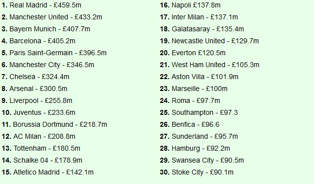 Богатые охотники за динамовцами. "Сандерленд" и "Сток Сити" входят в топ-30 наиболее финансово успешных клубов мира