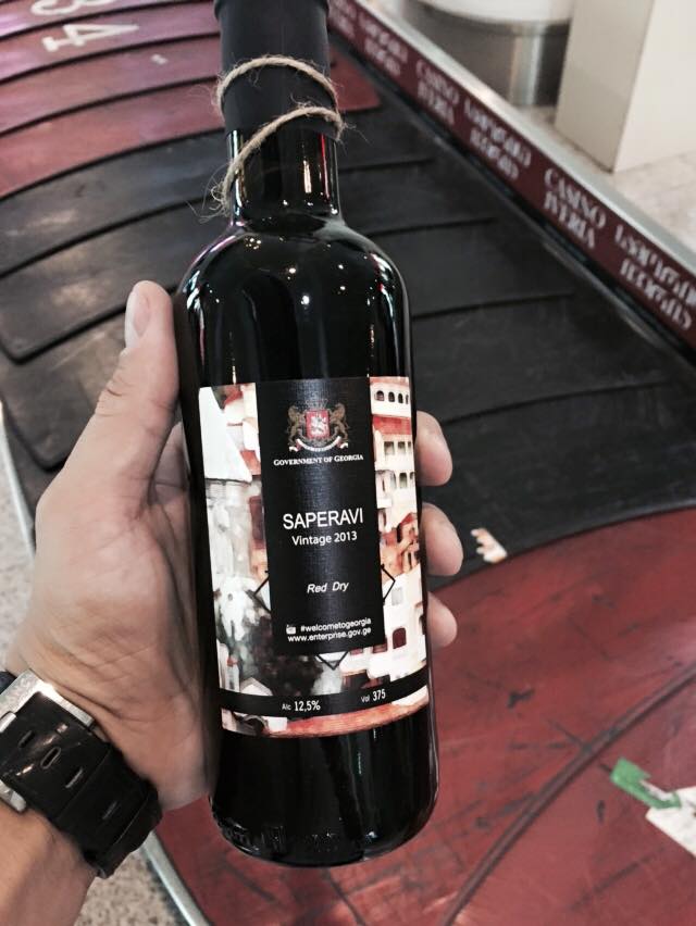 "Невероятный паспортный контроль в моей многолетней практике! Вместе с печатью в паспорте о пересечении грузинской границы местная таможня в аэропорту вручила бутылку красного! Грузия, ты нравишься с первой минуты!", - подписал Денисов в Фейсбук фото с бутылкой вина в руке.