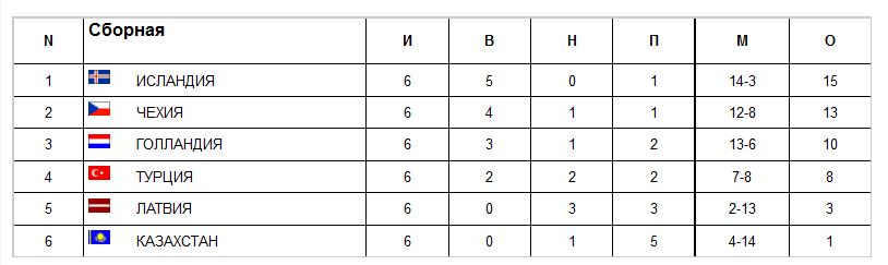 6 сентября. Турция – Голландия, Латвия – Чехия, Исландия – Казахстан.