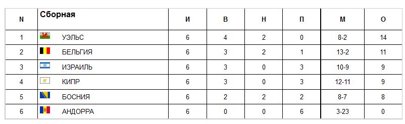 10 октября. Андорра – Бельгия, Босния – Уэльс, Израиль – Кипр.