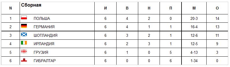 Германию сложно не расценивать как главного претендента на первое место – даже несмотря на ее минимальное отставание от Польши. В этом разрезе для нас было бы крайне нежелательно, если бы резко прибавила Шотландия. Проиграв ей в Глазго и уступив бундестим в ближайшем туре, поляки еще могут стать третьими, а их обойти в заочном споре будет куда сложнее. Потому, да простят нас наследники Уильяма Уоллеса, осенью мы не будем на их стороне. И пусть не расстраиваются: Ирландия, которой еще играть и в Германии и в Польше, вряд ли покинет четвертую строчку.