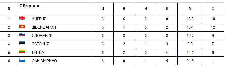 9 октября. Англия – Эстония, Словения – Литва, Швейцария – Сан-Марино.