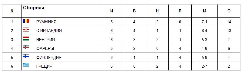 4 сентября. Фареры – Северная Ирландия, Греция – Финляндия, Венгрия – Румыния.