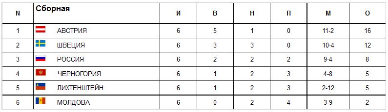 12 октября. Россия – Черногория, Швеция – Молдова, Австрия – Лихтенштейн.