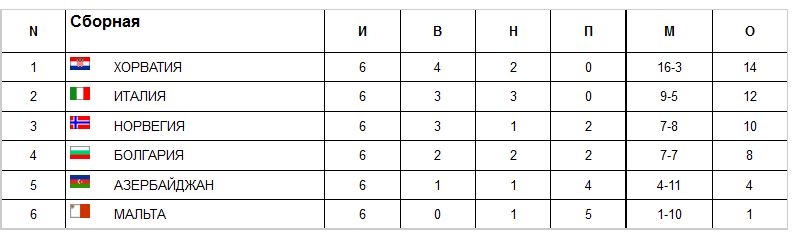 6 сентября. Норвегия – Хорватия, Мальта – Азербайджан, Италия – Болгария.