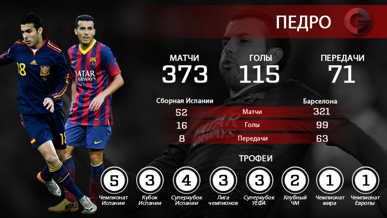 "Челси" объявил о трансфере нападающего Педро. Детали сделки не разглашаются, однако ранее сообщалось, что сумма трансфера 28-летнего испанца составит 28 миллионов евро. "СЭ" вспоминает статистику форварда в "Барселоне", а также в сборной Испании, в составе которой он становился чемпионом мира и Европы.