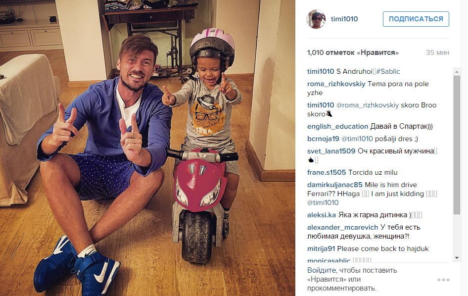Бывший форвард "Динамо" Артем Милевский опубликовал в Instagram фото с сыном еще одного бывшего динамовца Горана Саблича.