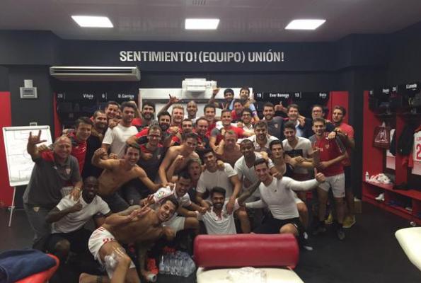 Полузащитник сборной Украины Евгений Коноплянка в твиттере опубликовал фото из раздевалки "Севильи" после победы над "Барселоной". Отметим, что сам Евгений участия в матче не принимал.