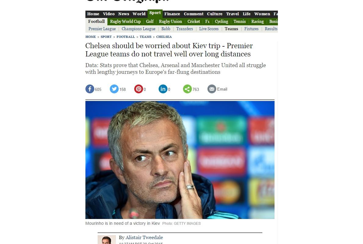 Ще одне досить авторитетне британське видання стверджує, що лондонцям слід остерігатися мандрівки до Києва, оскільки попередні сезони показують, що "Челсі" протягом останнім десяти сезонів переміг лише в 13 поєдинках з командами з країн, політ в які займає принаймні 3 години. Натомість інші англійські топові команди демонструють набагато кращі результати в матчах з колективами з Росії, Румунії та Туреччини