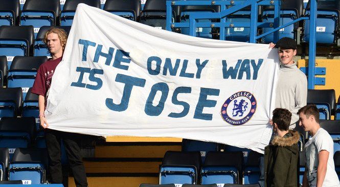 Фаны "Челси" вывесили баннеры в поддержку Моуринью