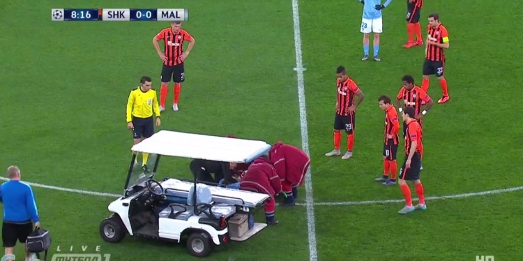 Тарас Степаненко в подкате случайно рукой ударил в лицо Левицки. Игрок на некоторое время потерял сознание, и его увезли за пределы поля.