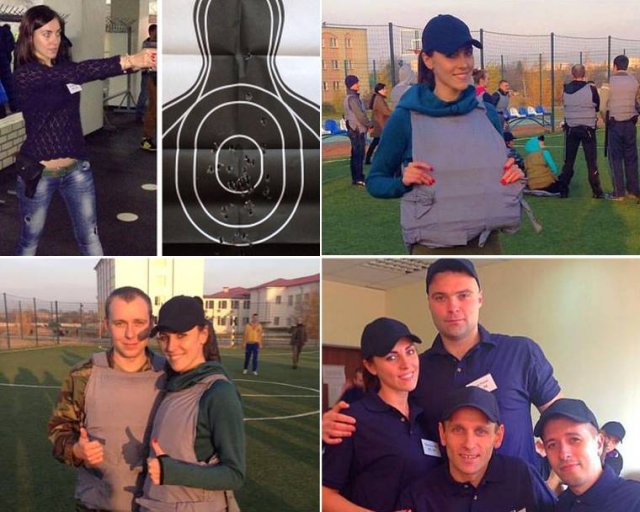 Вполне вероятно, что Аня сейчас находится на учениях, во время которых она примерила бронежилет и сделала памятные фотографии с коллегами по работе.
