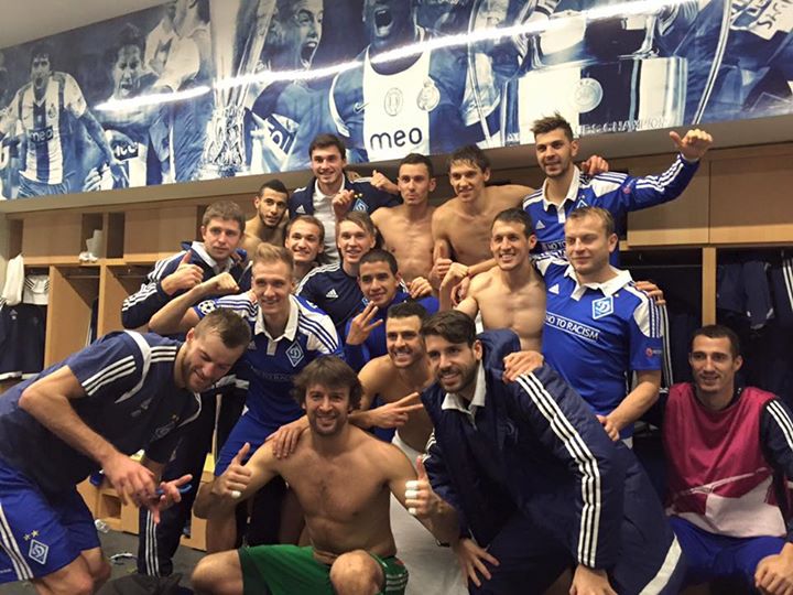 Голкипер киевского "Динамо" Александр Шовковский в своем Facebook поделился фото из раздевалки динамовцев после победы над "Порту".