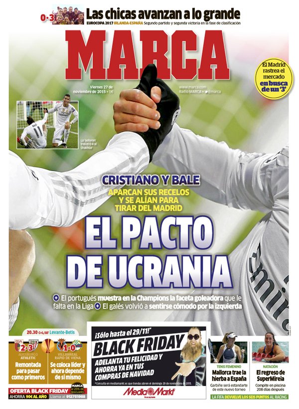 Статья Marca, в которой говорится о том, что Бейл и Роналду объединились ради "Реала", получила название "украинский пакт".