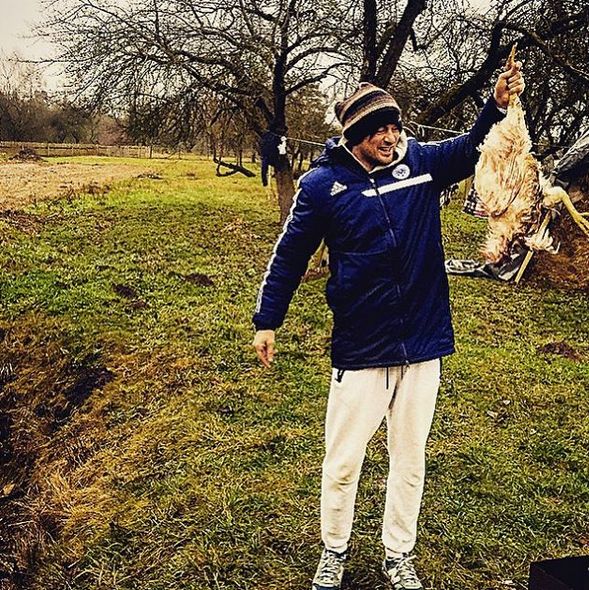 "Наказываем петухов", - подписал снимок футболист, на котором он позирует с домашней птицей на фоне сельской местности.