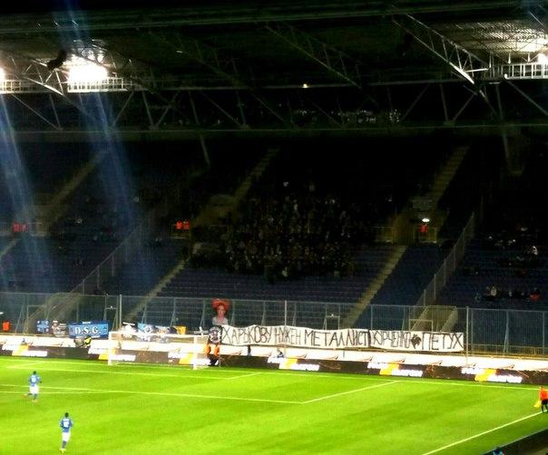 Болельщики «Днепра» вывесили баннер в поддержку своих коллег из «Металлиста».