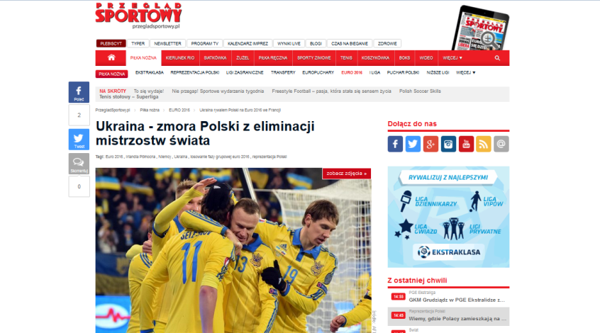 В авторитетном издании Przeglad Sportowy нашу сборную настолько уважают, что озаглавили материал «Украина – кошмар сборной Польши в квалификации ЧМ». По мнению автора Михала Столярчика, преимущество украинцев в том, что на них оказывается меньше давления. «21 июня 2016 года, в Марселе, в третьем туре группового раунда, наша команда сыграет с украинцами. Во многом от результата этого матча зависит, кто выйдет в плей-офф. И хотя букмекеры сейчас оценивают шансы сборной Польши более высоко, имейте в виду, что наши восточные соседи – непростые соперники. Два поражения в отборе к ЧМ-2014 мы до сих пор помним очень хорошо. Тогда наша команда под руководством Вальдемара Форналика получила болезненные уроки футбола: 1:3 на «Национальном», 0:1 во второй игре, после которой мы попрощались с шансами поехать на мундиаль. Дважды забил Андрей Ярмоленко, который стал лучшим бомбардиром Украины в отборе. Общая статистика наших встреч с украинцами – +3 = 2 -2.