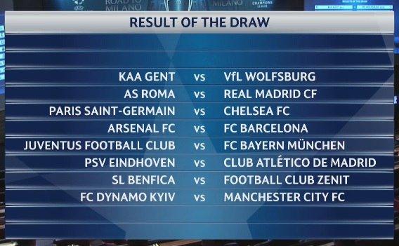 Все ары команд-соперниц в плей-офф Лиги чемпионов выглядят так: