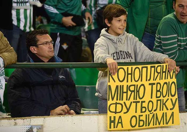 "Коноплянка, меняю твою футболку на объятия", - написал парень, разместившийся на секторе "Бетиса".
