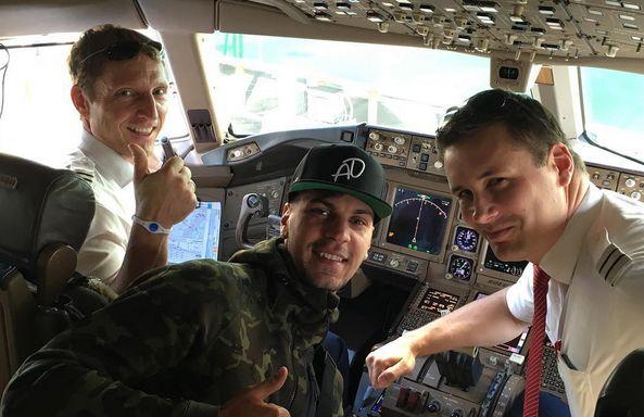 Защитник киевского "Динамо" Александар Драгович, находящийся в отпуске, сфотографировался вместе с пилотами самолета австрийских авиалиний.
