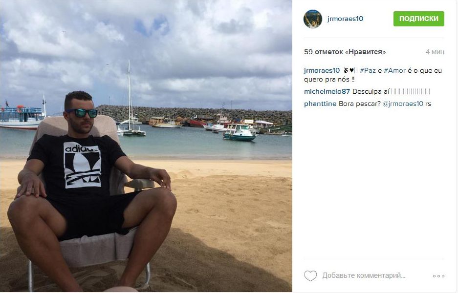 Форвард "Динамо" Жуниор Мораес поделился в Instagram фото со своего отдыха.