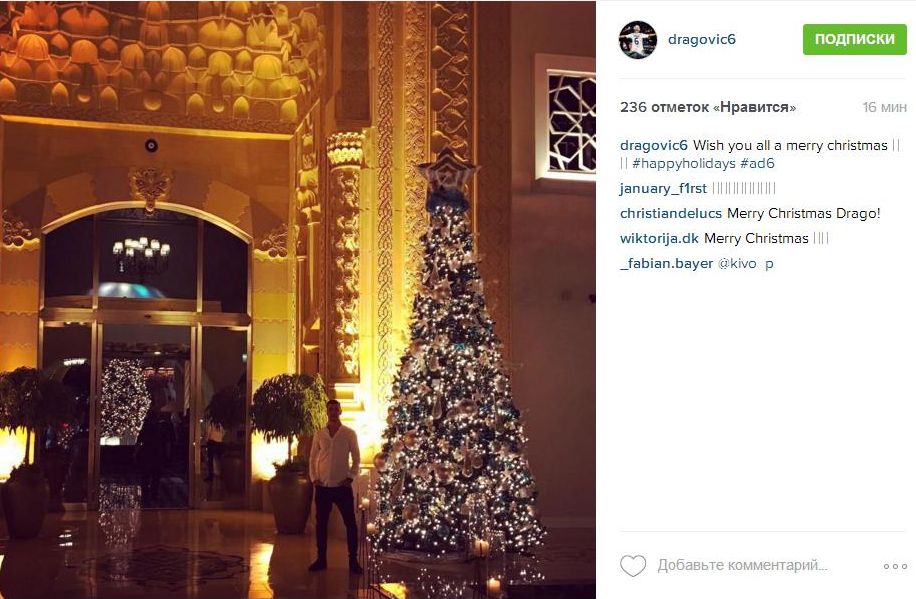 Защитник "Динамо" Александар Драгович в Instagram поздравил всех с Рождеством.