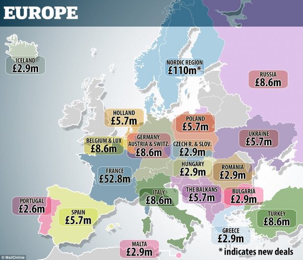 Английский Daily Mail раскрыл финансовые подробности контрактов, которые телеканалы со всего мира заключают с владельцами телеправ на показ английской Премьер-лиги.
