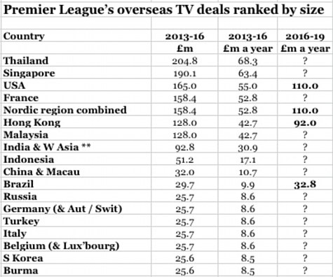 Для сравнения, больше всего платит Таиланд (почти 205 млн фунтов за 3 сезона). Отметим, что цена новых телеправ выросла более чем вдвое. Так, в США только за один сезон АПЛ заработает 110 миллионов фунтов вместо прежних 55. А вот бразильцы заплатят даже в 3 раза больше (32, 8 млн, а раньше было 9,9).