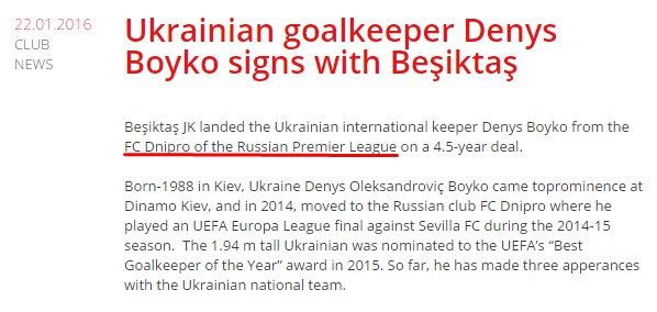 Официальный сайт "Бешикташа" назвал "Днепр" российским клубом