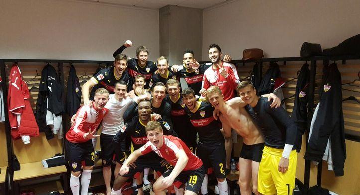 Кравец вместе с партнерами по "Штутгарту" радуется победе над "Кельном" в раздевалке