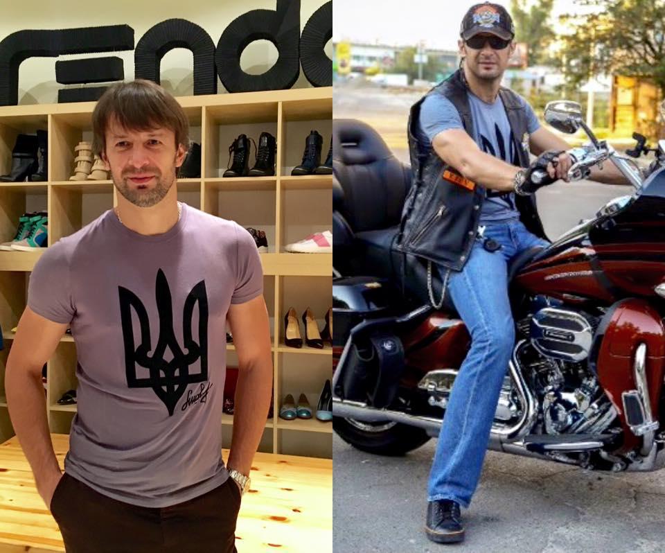 Собственно, модную одежду рекламирует сам Шовковский, который позирует в футболке, сидя на байке и стоя в бутике.