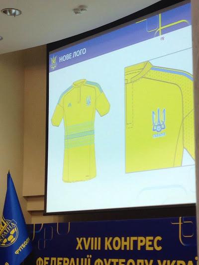 На сегодняшнем XVIII Конгрессе ФФУ был представлен эскиз нового лого Федерации футбола Украины. Вот так оно выглядит на футболке нашей национальной команды.