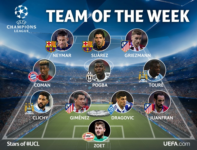 Зут - Хуанфран, Хименес, Драгович, Клиши - Туре, Погба, Коман - Неймар, Суарес, Гризманн