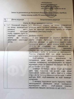 Відповідно до документу клуб-заявник має поінформути Дирекцію Прем'єр-ліги про місце проведння матчу не пізніше, ніж за 14 діб до базової дати туру.