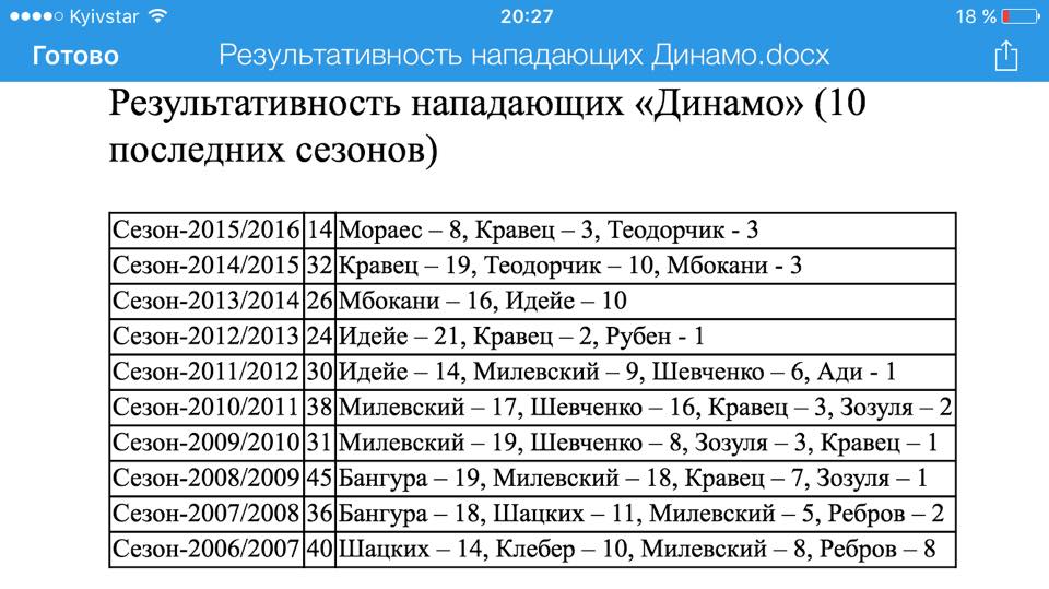 Обозреватель газеты "Команда" и авторитетный аналитик Евгений Гресь в своем facebook поделился статистикой результативности форвардов "Динамо" в 2016 году.