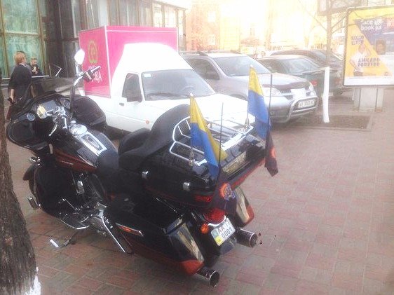 Появление огромного байка, увешенного флагами Украины, с высоким мужчиной, одетым в байкерскую косуху с патриотичной символикой, вызвало оживление на киевской станции "Дворец Спорта". Обращало на себя внимание и то, что с мотоцикла на огромной громкости играла песня "Вище неба" Океана Эльзы.