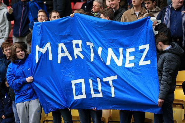 Болельщики "Эвертона" выразили недовольство работой наставника команды Роберто Мартинеса. В матче 33-го тура чемпионата Англии "Уотфорд" - "Эвертон" (1:1) фанаты "ирисок" вывесили баннер с надписью: "Мартинес, уйди".